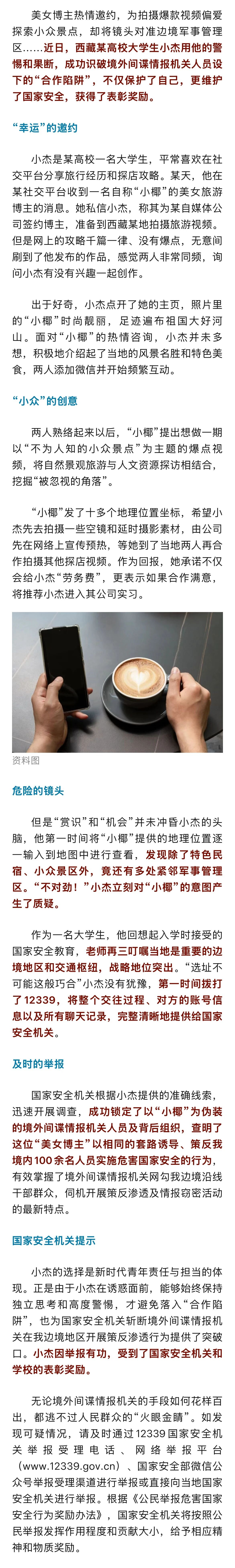 国家安全机关查明:一“美女博主”诱导、策反我境内100余名人员