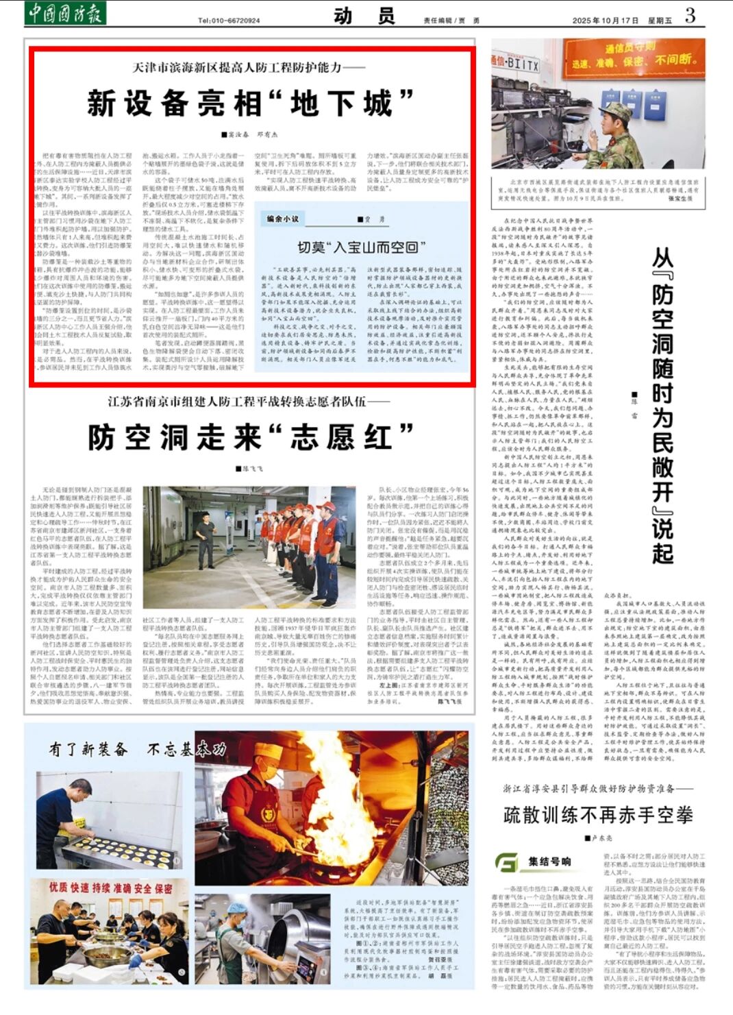“实现人防工程快速平战转换、高效掩蔽人员,离不开高新技术设备的助力增效。”滨海新区国动办副主任张磊说,下一步,他们将联合相关技术部门,为掩蔽人员量身定制更多的高新技术设备,让人防工程成为安全可靠的“护民堡垒”。